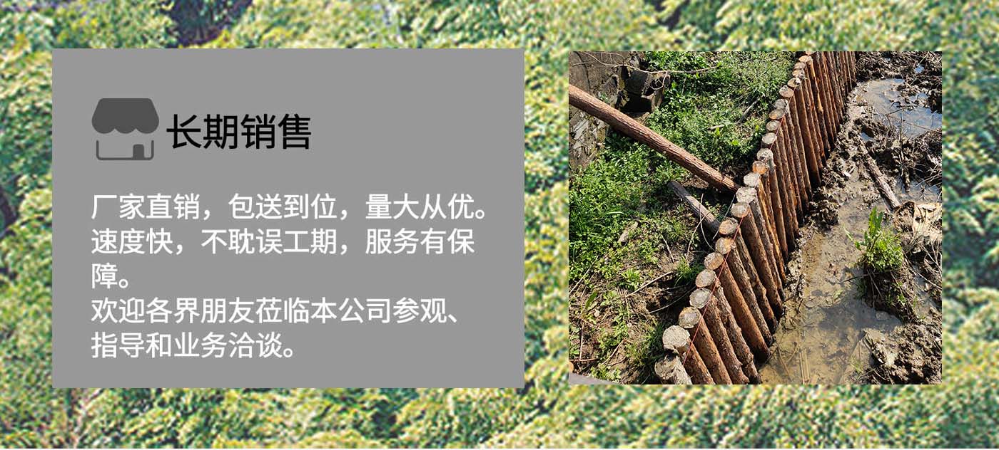 南京市云森木業(yè)有限公司位于南京市高淳區(qū)。是一家生產(chǎn)加工,線上銷售為一體的現(xiàn)代化企業(yè)。擁有完善、科學(xué)的質(zhì)量管理體系及工作團(tuán)隊(duì)。 公司主營松木樁,杉木樁,打樁木,河道木樁,駁岸木樁,防汛木樁,景觀木樁、園林綠化支撐桿等,也可支持方料,木板等木材定制加工產(chǎn)品,所選原材料均為黃山中心林區(qū),樹齡均在三十年左右。質(zhì)地緊密,樹形優(yōu)美。 本公司貨源充足,供貨能力強(qiáng),地處高淳,交通方便利,江浙滬皖送貨上門,當(dāng)天可達(dá)。本著“誠信為本,客戶至上”的經(jīng)營宗旨,真誠希望與您合作。 歡迎各位客戶前來咨詢,定以優(yōu)良品質(zhì)和價(jià)格回饋廣大客戶。