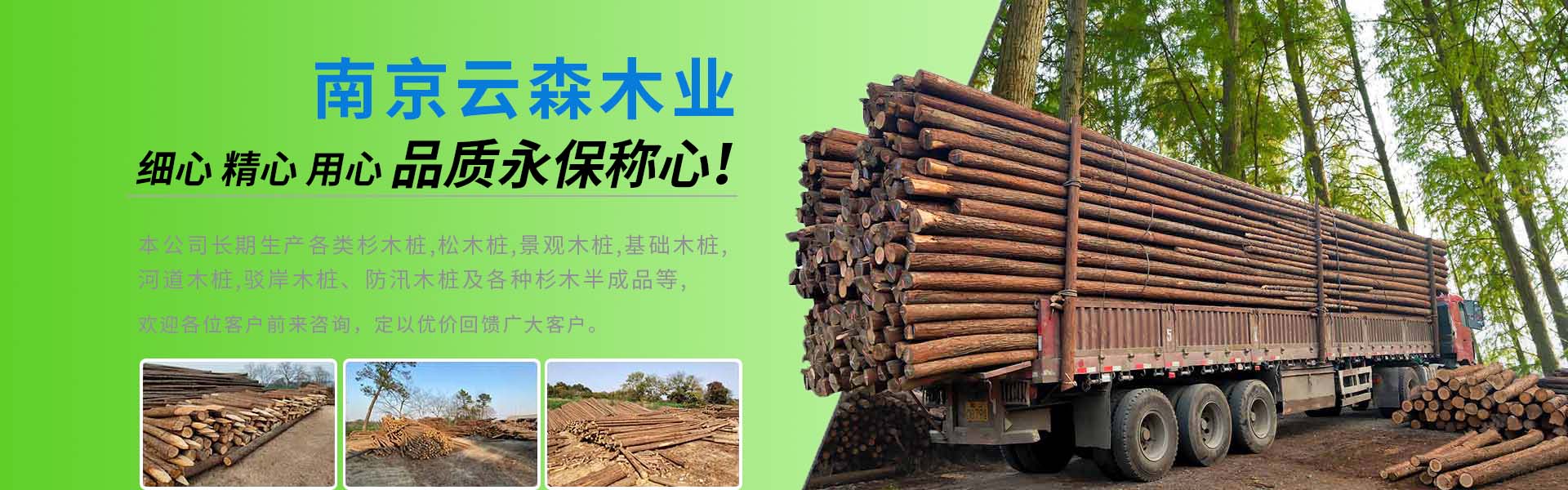 南京市云森木業(yè)有限公司位于南京市高淳區(qū)。是一家生產(chǎn)加工,線上銷售為一體的現(xiàn)代化企業(yè)。擁有完善、科學(xué)的質(zhì)量管理體系及工作團(tuán)隊(duì)。 公司主營松木樁,杉木樁,打樁木,河道木樁,駁岸木樁,防汛木樁,景觀木樁、園林綠化支撐桿等,也可支持方料,木板等木材定制加工產(chǎn)品,所選原材料均為黃山中心林區(qū),樹齡均在三十年左右。質(zhì)地緊密,樹形優(yōu)美。 本公司貨源充足,供貨能力強(qiáng),地處高淳,交通方便利,江浙滬皖送貨上門,當(dāng)天可達(dá)。本著“誠信為本,客戶至上”的經(jīng)營宗旨,真誠希望與您合作。 歡迎各位客戶前來咨詢,定以優(yōu)良品質(zhì)和價(jià)格回饋廣大客戶。